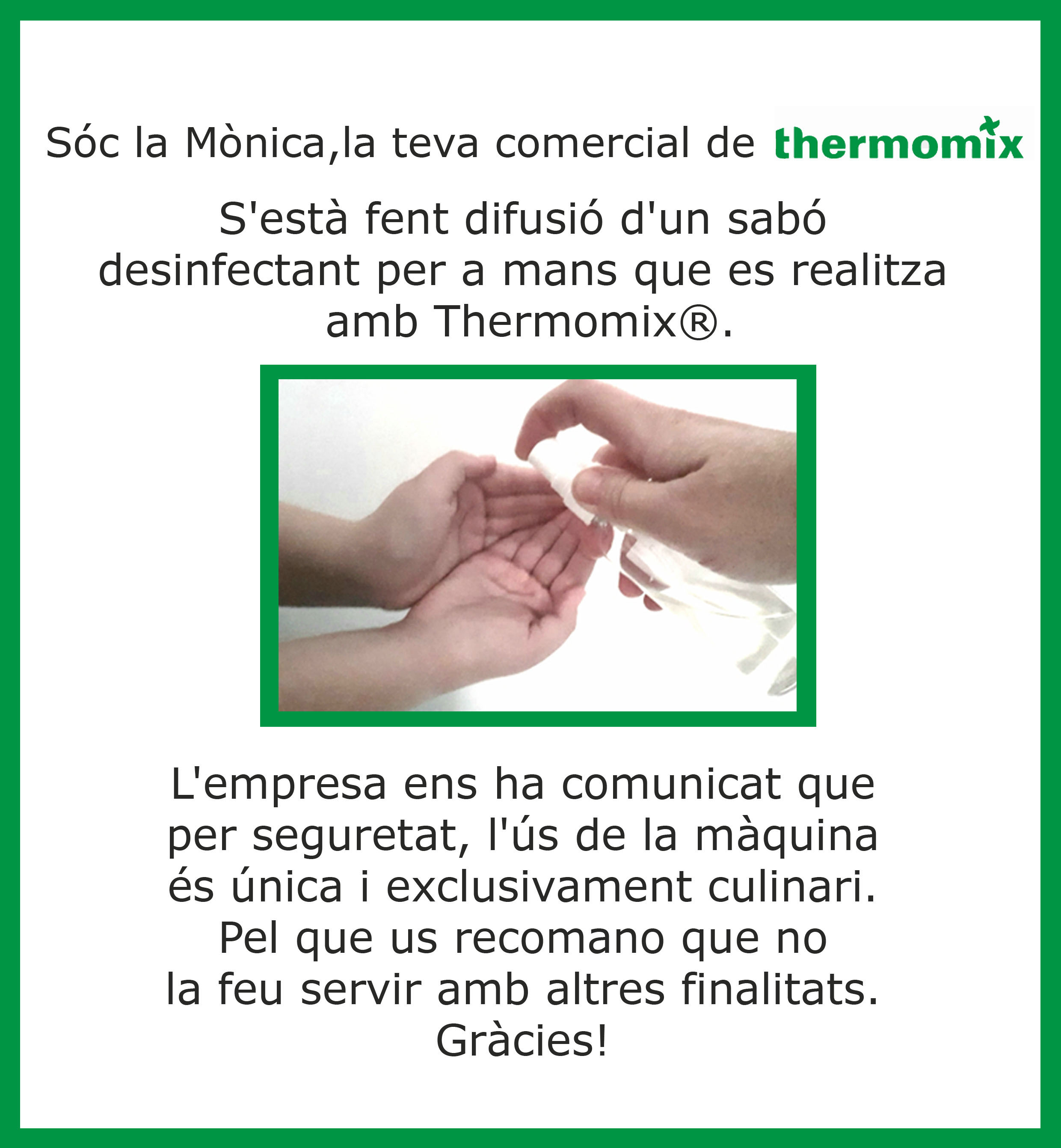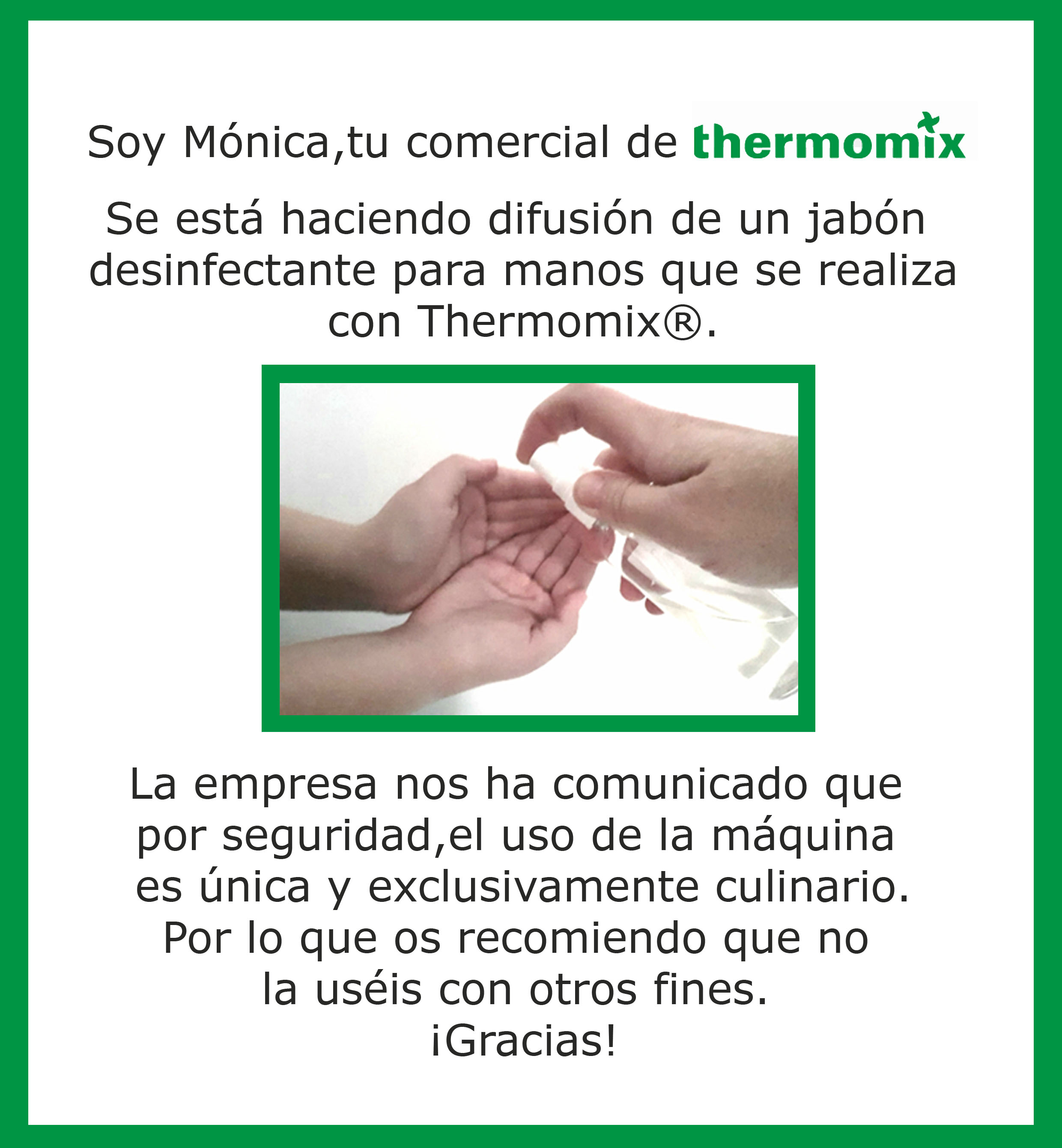 NO realizar ningún gel desinfectante,ni jabón ni receta QUE NO SEA CULINARIA con nuestro Thermomix®