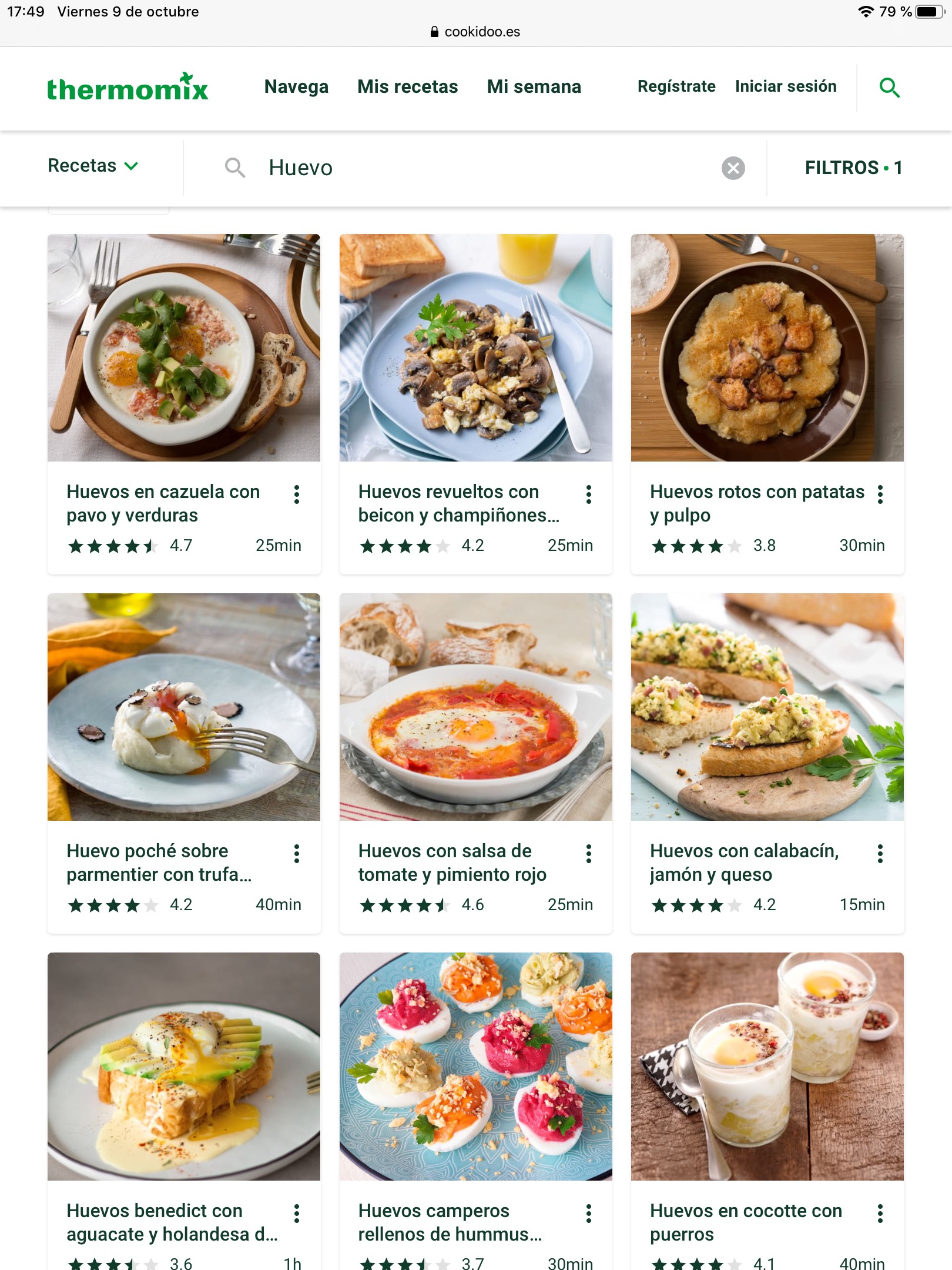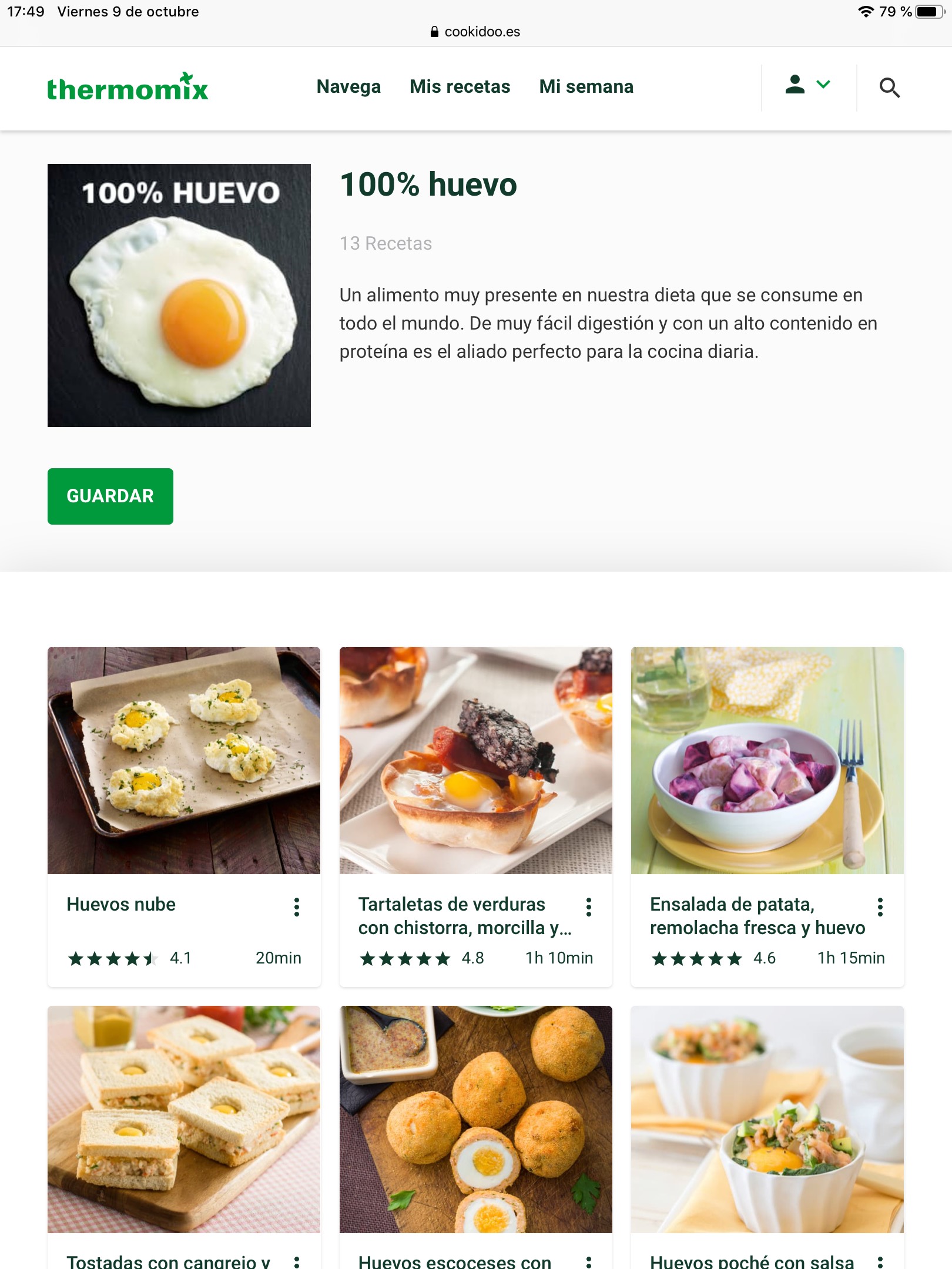 Si escrivim HUEVO al cercador de COOKIDOO ens sortiran desenes de receptes i si busquem a les col·leccions trobarem la col·lecció específica 100%HUEVO.