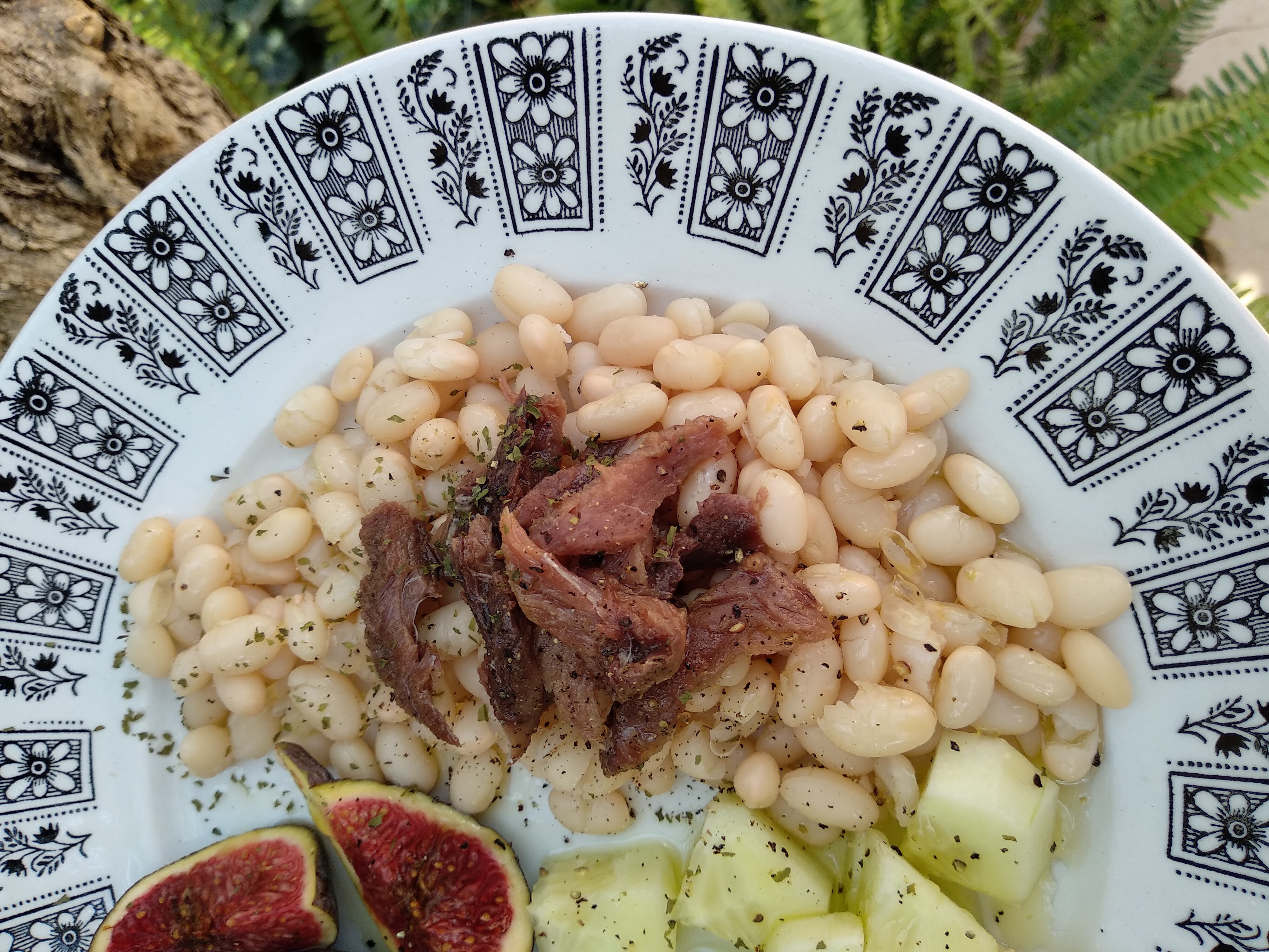 Amb una part dels fesols vaig preparar una amanida amb figues, cogombre i ganyims i l'altra la vaig congelar per properes preparacions.