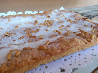 - Empolvorem generosament la coca amb sucre i afegim els pinyons.