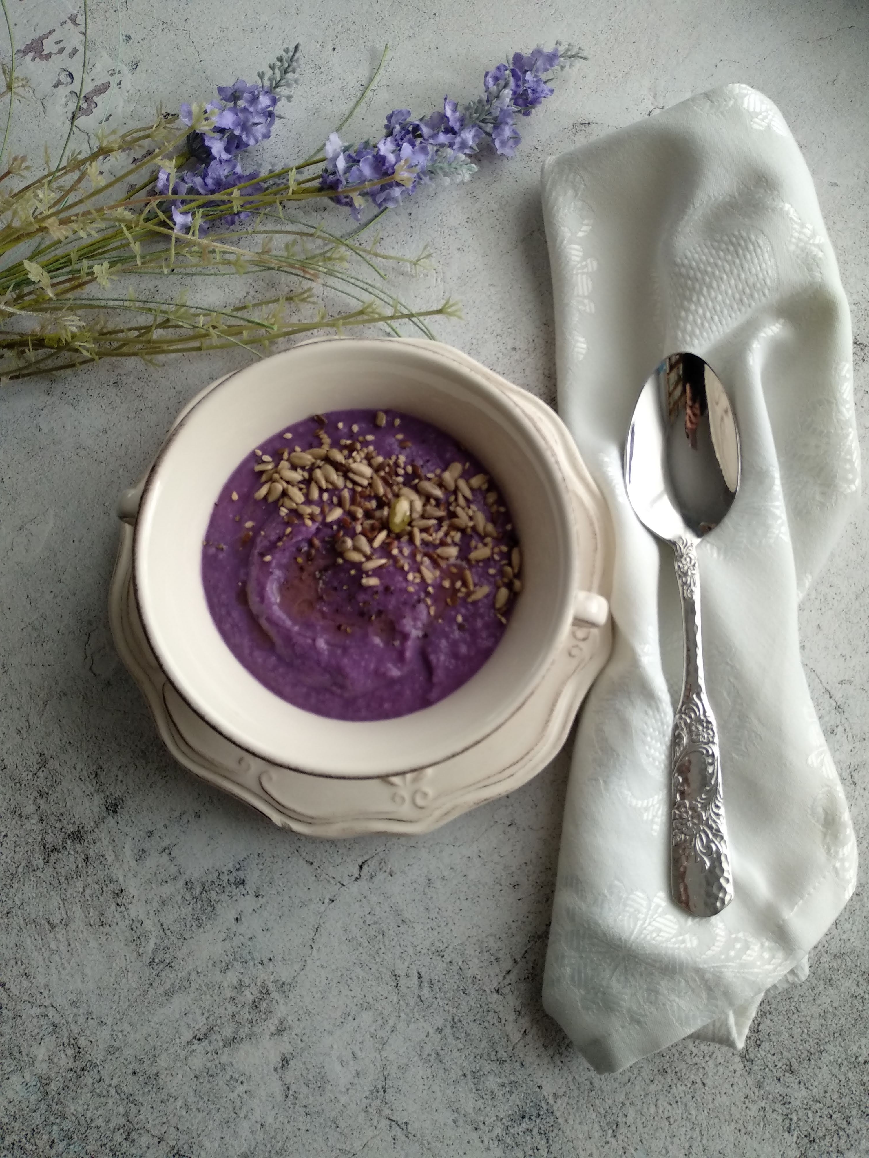 Fa uns dies us explicava que fa poc que he descobert la col lombarda. És la segona vegada que faig una crema i m'he enamorat del color que queda. Que maco és!