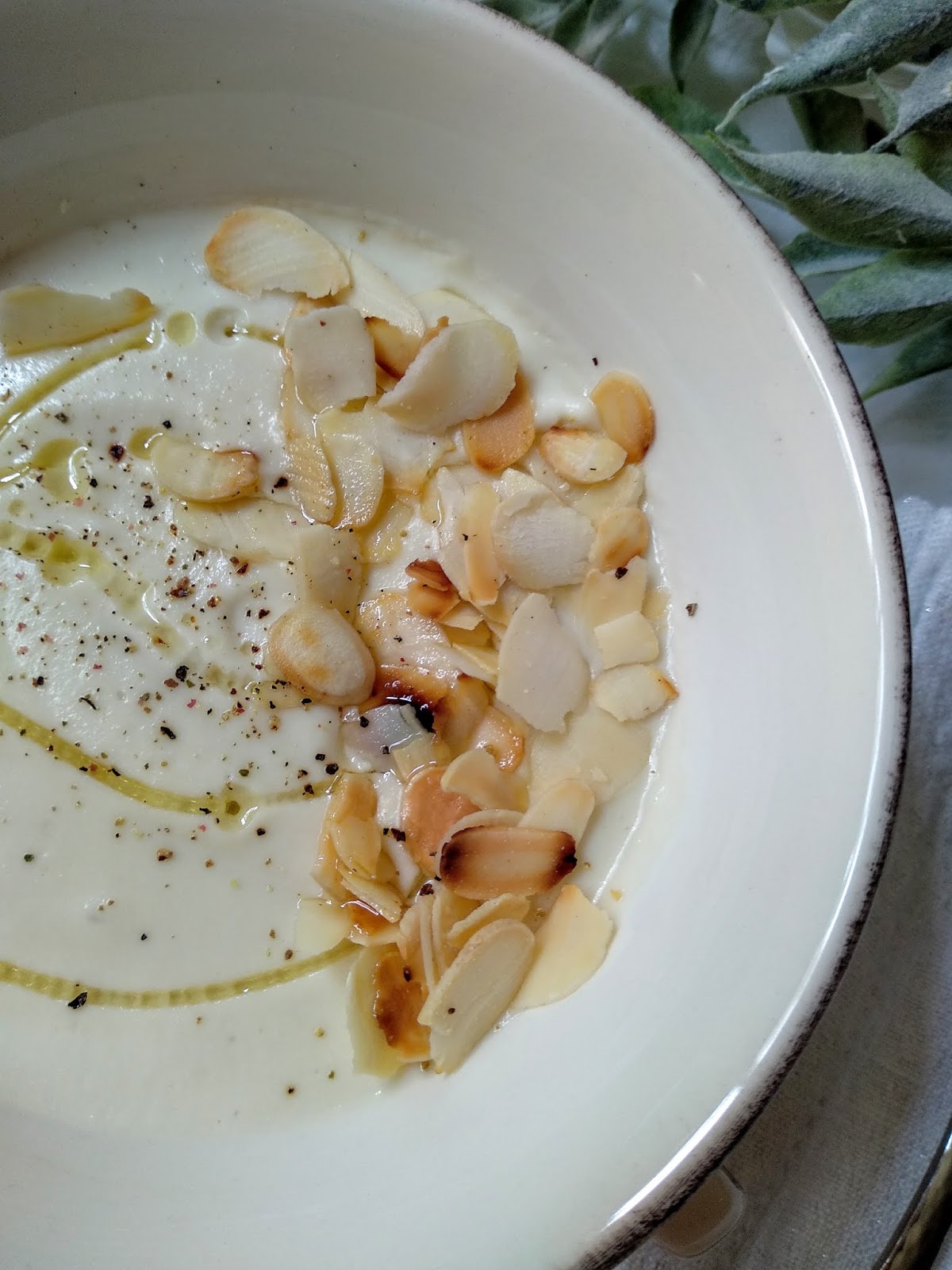 Fa uns dies vaig anar a dinar a un restaurant de Tortosa al menú del dia del qual hi havia plats vegetarians. Vaig optar per triar de primer plat una crema freda de col-i-flor i ametlla. Gran encert!!! Em va agradar moltíssim! I com altres vegades em passa...aquella mateixa setmana la vaig preparar a casa, a la meva manera.