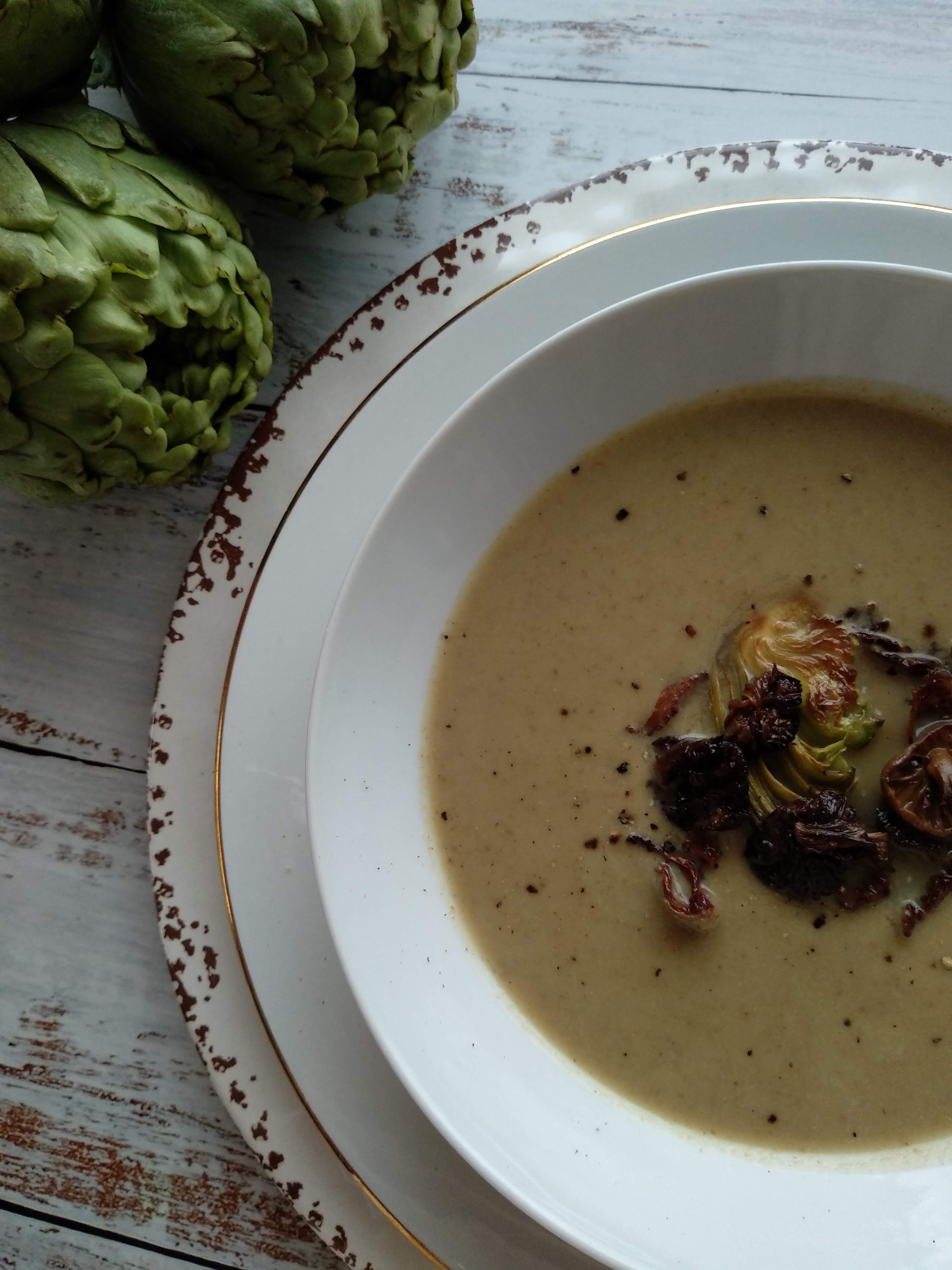 Avui us presento l'última sopa que he provat. Us explico d'on ha sortit: fa unes setmanes em vaig comprar un llibre amb receptes de sopes que feia temps que tenia en llista d'espera. A la primera que li vaig posar l'ull i és a la que m'ha inspirat a fer la que jo us presento...la de bolets i carxofes. Vaig fer uns canvis a la recepta original i, com no, l'he adaptat al nostre Thermomix.