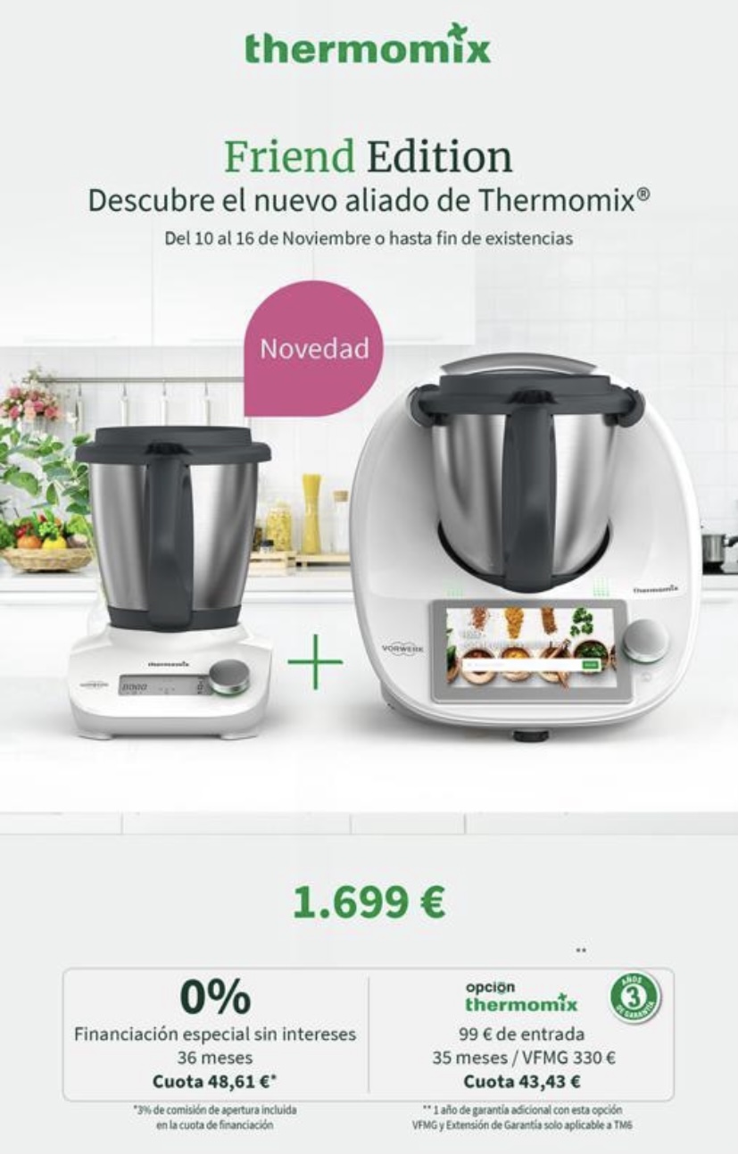Como siempre Thermomix® esta en la vanguardia. Solo durante esta semana , nuestros clientes podrán adquirir su Thermomix® junto con Friend.1000 Unidades exclusivas para poder ofrecer este producto con su Thermomix® del 10 al 16 de noviembre o hasta fin de existencias.